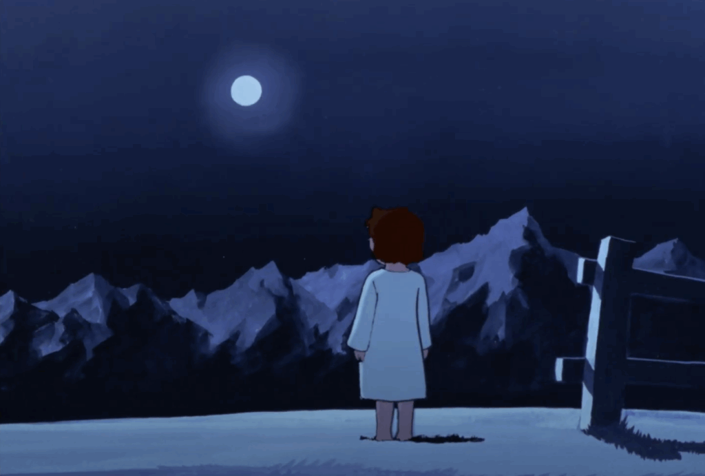 この意味で『かぐや姫』の物語展開は、もしハイジがフランクフルトからアルプスに戻らなかったらどうなっていたか、という仮定を実演したものと考えられる。最悪の展開であるが、ありえない話ではないだろう。病という形で示されるハイジの訴えを誰も聞き届ける人がいなかったとすれば、彼女はどうなっていただろうか。ここでほのめかされているのは、行き詰まった生の出口としての死である。