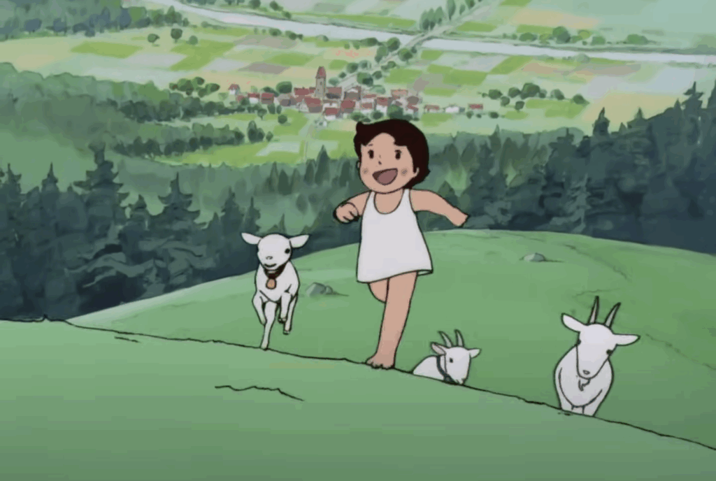 こうした明るさは、『アルプスの少女ハイジ』(1974)第1話で、衣服を脱ぎ捨てて、草原を大はしゃぎで走り回ったり笑い転げたりするハイジの解放的な生命力描写とあまり変わらないのではないか。