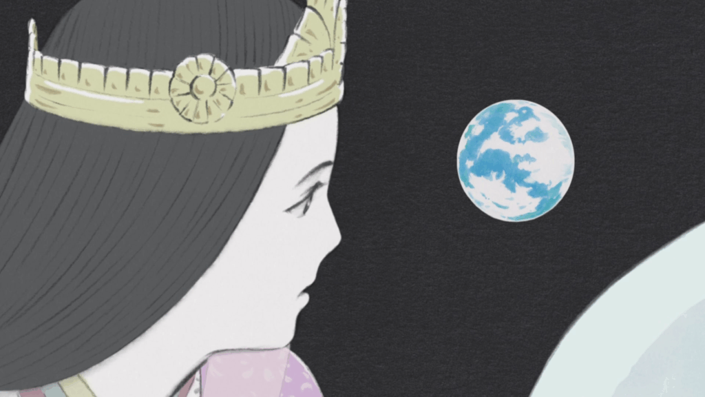 興味深いのはラストシーンだ。そこでは、月を見上げる人々の姿と、天上から地上を一瞥するかぐや姫のまなざしが示される。ここにおいて月は死者のまなざしと化している。『おもひでぽろぽろ』のタエ子や『火垂るの墓』の清太のように、かぐや姫=月は、どこか寂しげに生者たちを見つめている。